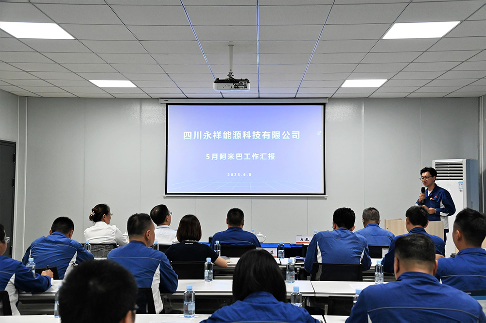 6月9日,永祥能源科技組織召開阿米巴總結(jié)會,永祥股份技術(shù)中心(國家級)主任、永祥能源科技項目指揮長甘居富,永祥股份財務(wù)總監(jiān)袁仕華,永祥股份專家級顧問陳瑛,永祥能源科技項目指揮長助理王躍參會。
