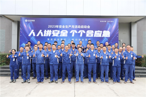 5月30日,永祥多晶硅成功舉行以“人人講安全、個個會應急”為主題的安全生產月活動啟動儀式,永祥股份副總經理、永祥多晶硅總經理劉逸楓,永祥多晶硅安全環保總監牟俊豐、總經理助理彭勇、副總工程師羅軒、總經理助理王世棋出席儀式,公司各部門、工段負責人、安全管理人員、工段三大員參加。