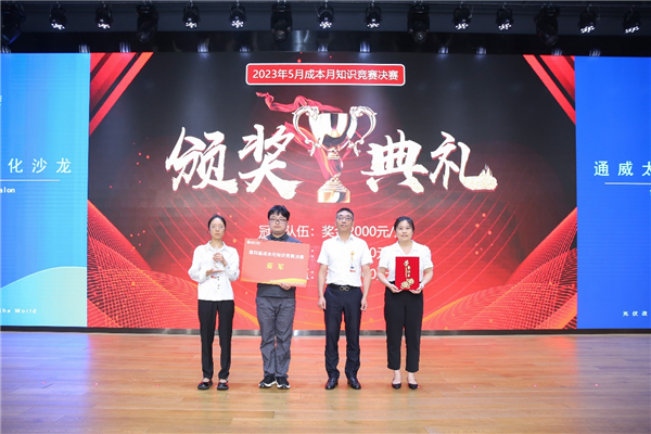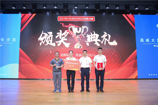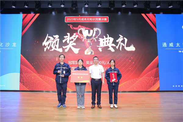 在本屆成本月競(jìng)賽中,各基地有力組織,來(lái)自廠部的選手組合成隊(duì)在基地完成激勵(lì)的初賽最終決出基地冠軍代表隊(duì)參與本次知識(shí)競(jìng)賽決賽。決賽現(xiàn)場(chǎng),各支隊(duì)伍圍繞“開源節(jié)流促發(fā)展,挖潛增效創(chuàng)輝煌”的主題,通過(guò)計(jì)時(shí)搶答展開激烈角逐。各支隊(duì)伍全神貫注投入其中,認(rèn)真聽題,踴躍作答,展現(xiàn)了積極向上的通威精神與風(fēng)采。最終,經(jīng)過(guò)三輪激烈角逐,彭山基地代表隊(duì)勇奪冠軍、眉山基地代表隊(duì)榮獲亞軍、通合項(xiàng)目代表隊(duì)獲季軍。