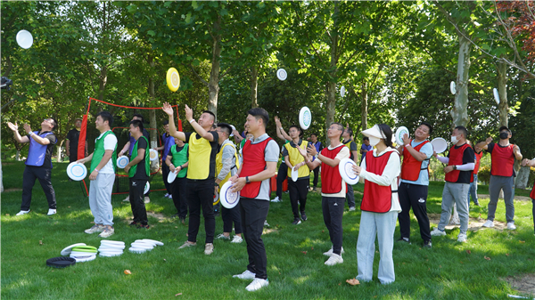 本次素質(zhì)拓展活動圍繞破冰熱身、春風吹—戰(zhàn)鼓擂、極限飛盤三大項目展開。在破冰環(huán)節(jié),伙伴們隨機組成四支隊伍—“夢之藍隊”、“超越隊”、“霹靂火隊”、“閃電隊”,通過取隊名、制作隊伍旗幟、齊唱隊歌不斷融合一體,深入發(fā)展團隊關系,培養(yǎng)團隊默契。