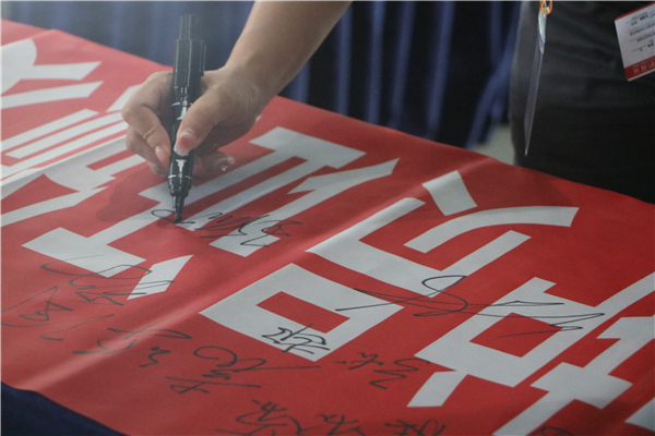 救護員在志愿隊成立橫幅上簽名