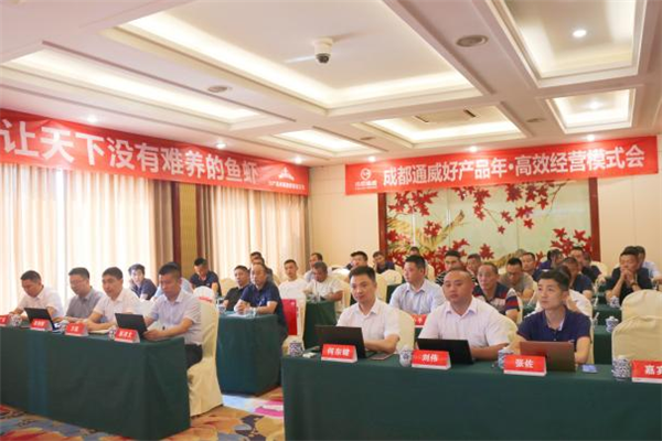 5月16日,由成都通威舉辦的“好產品年·高效經營模式會”圓滿舉辦,通威農發副總經理兼成都通威總經理何東鍵、成都三新藥業總經理蔡澤文、湛江海先鋒公司副總經理萬超、成都三新藥業總經理助理肖利祥與經銷商、養殖戶朋友們齊聚成都雙流,共商經銷商未來發展之道,解析規模養殖戶如何有效防控水產動物疾病。