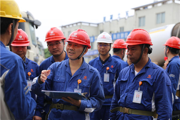 廖總一行先后到商砼裝料區、混凝土預拌樓、外加劑復配間等區域,對車輛出車前檢查記錄、預拌樓設備、外加劑復配間等進行檢查,對檢查出的偏差項按四定原則落實整改。