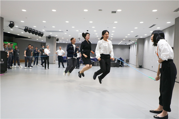 活動(dòng)現(xiàn)場(chǎng),當(dāng)《童年》《同桌的你》《稻香》這些耳熟能詳?shù)母枨诙呿懫?,大家紛紛合唱,仿佛置身于中學(xué)時(shí)代,朗朗上口的童年廣告詞搶答讓大家回味“經(jīng)典”,跳格子、跳大繩、滾鐵圈時(shí)尚輪回,仿佛又讓大家回到了大課間,與同學(xué)嬉笑打鬧,展露笑顏,還有辣條、AD鈣奶、喔喔奶糖等記憶中的童年零食分享,好不快樂,學(xué)生時(shí)代是最好的時(shí)光。