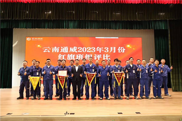 4月18日,云南通威召開月度紅旗班組評比會。永祥股份副總經理、云南通威總經理杜炳勝,云南通威副總經理汪云清,總經理助理閆一夫、楊成,指揮長助理李平清及相關部門負責人出席活動并擔任評委,班組成員及各工段管理干部參加。