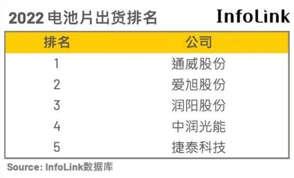 InfoLink 2022全年電池片出貨排名出爐,通威連續6年全球第一!