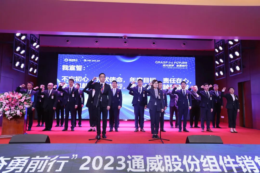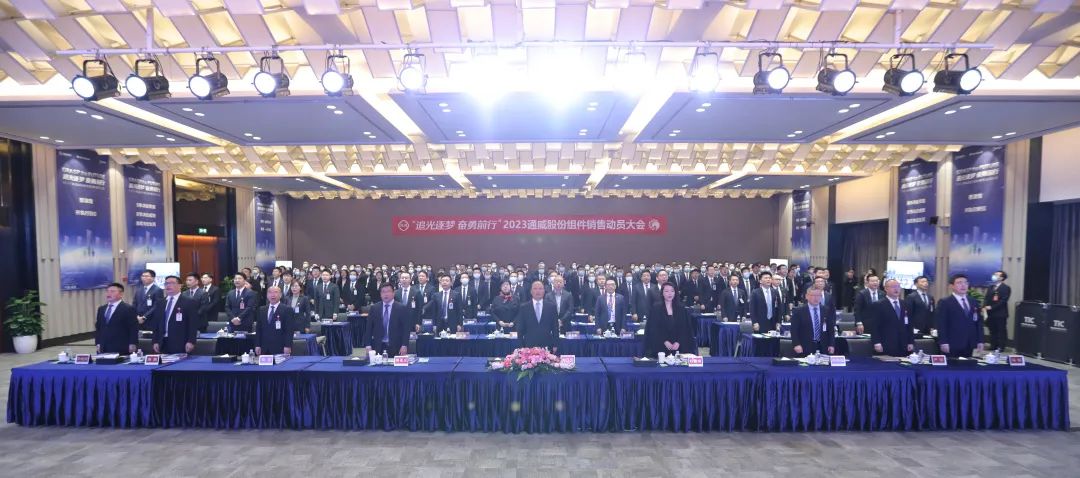 3月28日,以“追光逐夢 奮勇前行”為主題的通威股份2023組件銷售動員大會在通威國際中心如期舉行。全國人大代表、全國工商聯(lián)副主席、通威集團(tuán)董事局劉漢元主席,通威股份董事長、CEO劉舒琪出席并作重要指示。通威股份總部各部門主要負(fù)責(zé)人、光伏技術(shù)中心核心團(tuán)隊、組件生產(chǎn)及營銷團(tuán)隊等干部員工全程參與。