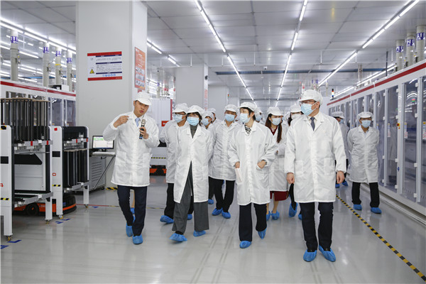 調(diào)研團(tuán)一行參觀通威太陽能雙流基地智能制造展廳