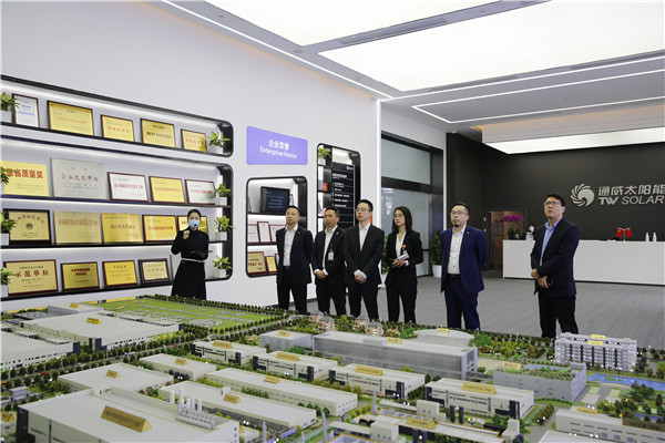 在通威太陽(yáng)能智能制造展廳,陳裕豐總經(jīng)理一行首先聽取了通威太陽(yáng)能發(fā)展歷程、生產(chǎn)規(guī)模及榮譽(yù)獎(jiǎng)項(xiàng)等基本情況介紹。隨后,陳裕豐總經(jīng)理一行深入通威太陽(yáng)能智能制造生產(chǎn)車間進(jìn)行參觀,實(shí)時(shí)查看車間自動(dòng)化、無(wú)人化生產(chǎn)流程,了解太陽(yáng)能晶硅電池的生產(chǎn)工藝流程及設(shè)備設(shè)施。參觀現(xiàn)場(chǎng),陳裕豐總經(jīng)理對(duì)通威太陽(yáng)能的發(fā)展速度、智能制造水平、精益管理理念以及綠色可持續(xù)發(fā)展理念給予高度贊揚(yáng)。