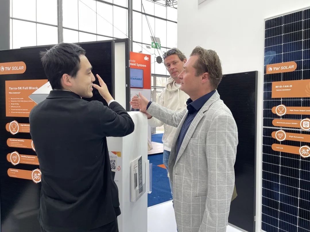 通威作為全球光伏新能源產業發展的重要參與者和主要推動力量之一,多年來,依托強勁、完善的產業鏈,組件產品遠銷40多個國家和地區,贏得了國際市場的高度認可。在本次荷蘭國際太陽能及儲能展會上,通威向荷蘭當地行業客戶介紹了公司高效組件產品,共同探討全球新能源產業發展,為全球更多客戶提供高效優質的通威“智”造與通威方案。