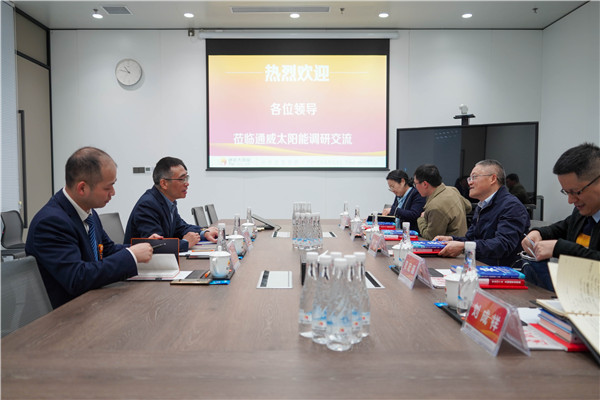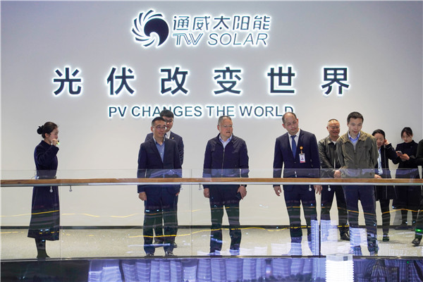 3月14日,成都市稅務局黨委委員、總審計師張盛一行蒞臨通威太陽能金堂基地開展走訪調研,通威太陽能副總經理宋梟攜通合新能源財務部、金堂財務部相關負責人陪同接待。