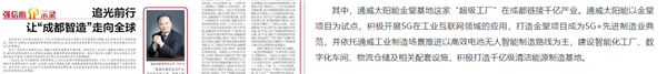 近日,成都日報以“追光前行 讓‘成都智造’走向全球”為題,聚焦通威太陽能助力成都光伏產業建圈強鏈。