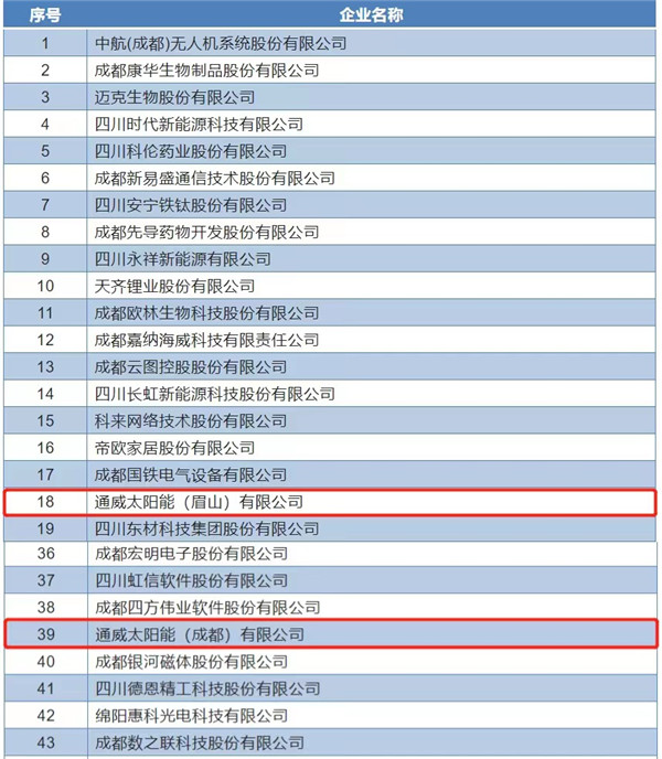 近日,四川省工業(yè)和信息化研究院發(fā)布了“2022年四川省新經(jīng)濟100強企業(yè)榜單”,通威太陽能雙流基地、眉山基地雙雙榮列其中。