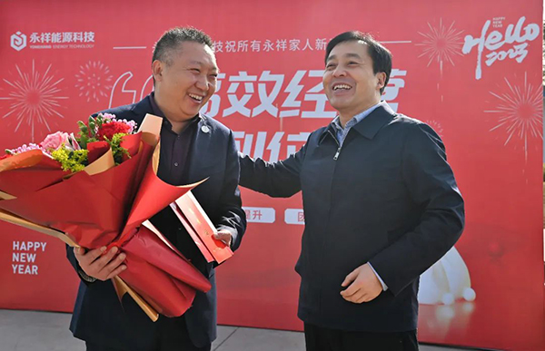 五通橋區委書記劉勇慰問了永祥股份技術中心(國家級)主任、永祥能源科技項目指揮長甘居富,對永祥能源科技一年來的付出與奮斗給予了高度肯定,希望能源科技在甘總的帶領下,再接再厲,以堅定的思想覺悟、飽滿的精神狀態、務實的工作作風,創造更多、更高的價值,作出更好、更優秀的成績。