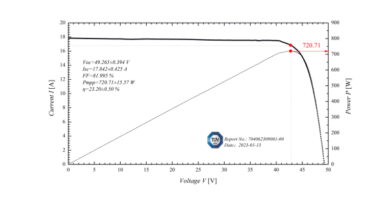 近日,經權威第三方機構TüV南德測試見證,通威210 HJT雙玻組件實測正面最高功率720.7W,創造了異質結組件功率新紀錄。
