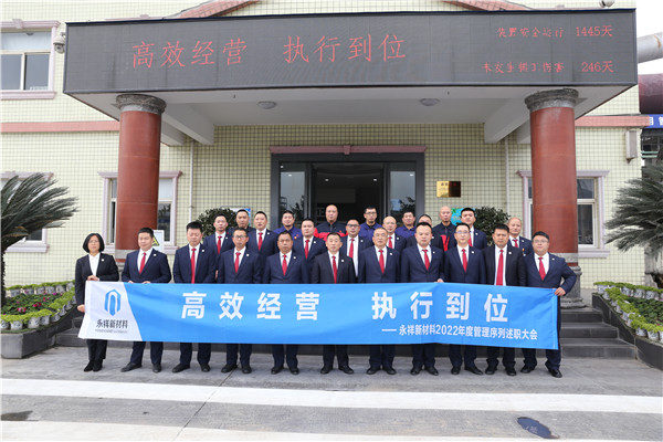 1月9日,永祥新材料2022年度管理序列述職大會成功召開,公司常務副總經理廖萬能、副總工程師吳銘生、總經理助理李文彬出席,14名管理干部作2022年度述職報告,技術員及以上人員、后勤職能部門人員列席會議。