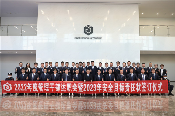 12月30日,內蒙古通威2022年度管理干部述職會暨2023年安全目標責任狀簽訂儀式成功舉行,通威股份副總裁、永祥股份總經理李斌,永祥股份副總經理易繼成視頻出席,永祥股份副總經理、內蒙古通威總經理袁中華參加