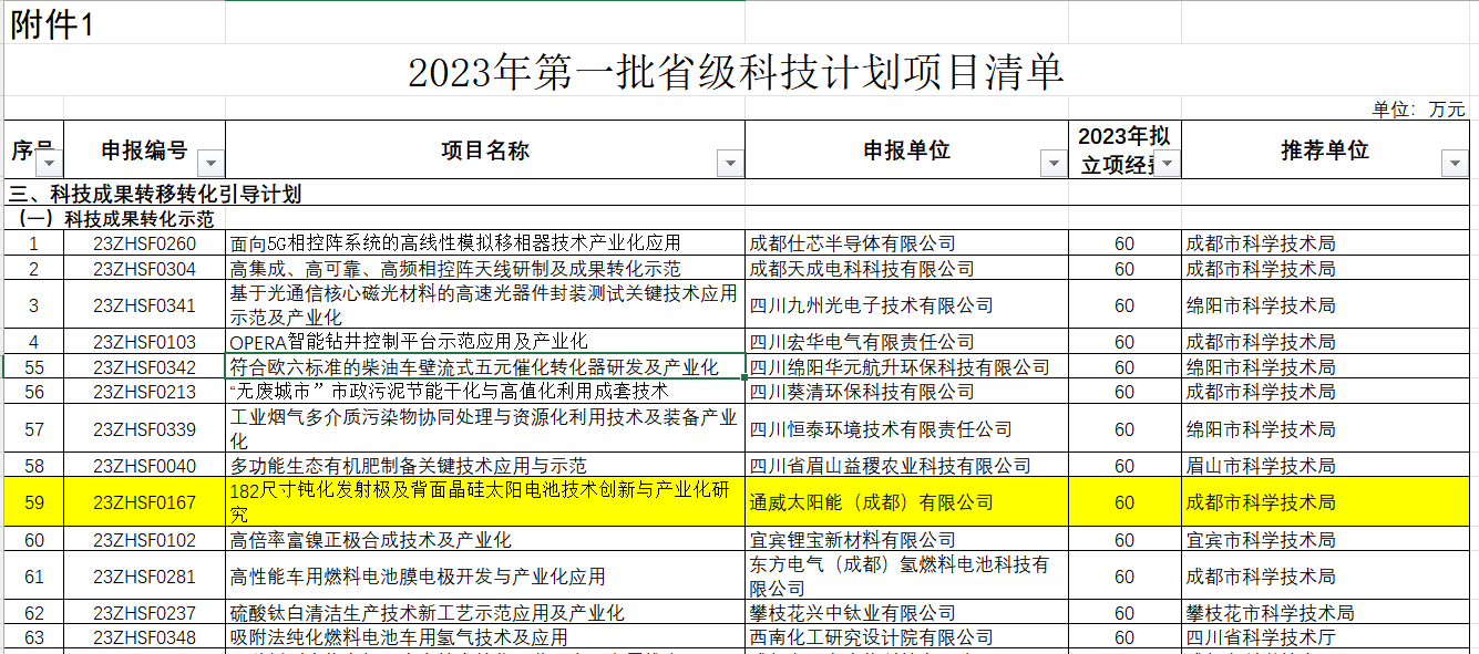 通威太陽(yáng)能成功入列四川省《2023年第一批省級(jí)科技計(jì)劃項(xiàng)目清單》