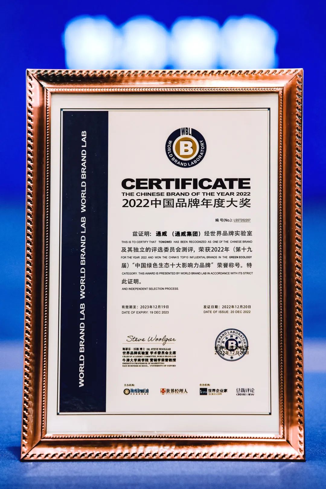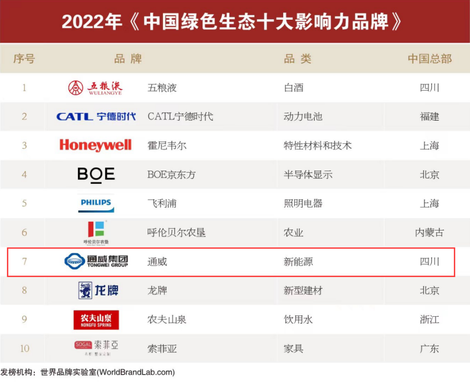 12月20日,由業(yè)界權(quán)威機構(gòu)世界品牌實驗室(World Brand Lab)評選的2022年“中國品牌年度大獎”于上海隆重揭曉。35個領(lǐng)軍品牌入選“2022年中國品牌年度大獎”。憑借全球品牌影響力和領(lǐng)先的綠色發(fā)展實力,通威榮獲“中國綠色生態(tài)十大影響力品牌”。