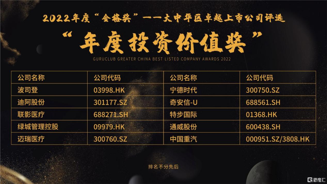 通威股份榮獲2022年度卓越董事會 據悉,本年度“資本市場‘金帆’樣本案例研究”征集類型包括中國上市公司高質量發展系列、中國金融機構卓越貢獻系列、粵港澳大灣區建設領軍系列三大類,案例共設有27個小類,眾多參選企業中,61家公司機構分獲“金帆”案例提名。 與此同時,在歷經三個多月的激烈角逐后,2022中國企業ESG“金責獎”評選獲獎名單于12月15日正式出爐。經ESG綜合績效、專業評審打分及網絡投票結果等綜合評定,通威股份榮獲2022中國企業ESG“金責獎”——最佳環境(E)責任獎。 通威股份榮獲2022中國企業ESG“金責獎”——最佳環境(E)責任獎 “金責獎”不僅意在表達業界對負責任企業的認可,更旨在為更多企業增添發展ESG的動力。2022中國企業ESG“金責獎”組委會對通威股份的獲獎表示誠摯的祝賀,對通威在ESG行動和績效方面取得的顯著成果深感欽佩。 12月16日,格隆匯·全球投資嘉年華·2023之“金格獎”——大中華區卓越上市公司榜單正式公布。通威股份榮獲年度投資價值獎,全國人大代表、全國工商聯副主席、通威集團董事局劉漢元主席榮獲“年度卓越領袖”殊榮。 通威股份榮獲“年度投資價值獎”殊榮