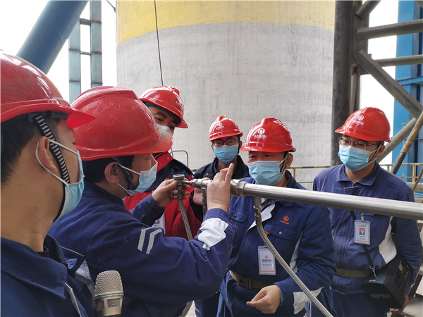 廖總一行先后來到篦冷機風機群、大布袋收塵器、篦冷機、回轉窯、預熱器等位置。通過生產技術部經理助理楊濤的介紹,了解經理助理在現場檢查中的關注點。隨后,參加現場專項會的部門負責人從自己的關注點提出改善意見。