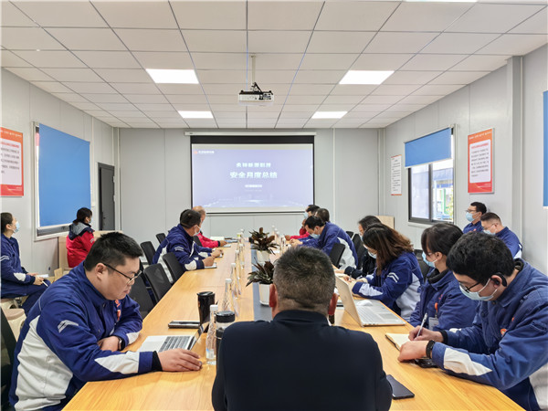 會議對當前安全工作展開分析,安環組在匯報中指出,11月能源科技一期項目安全穩定運行,組織了四次施工安全周檢查,并開展消防月活動。隨后各專業組匯報本月安全工作進展情況。