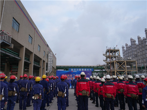 為了突出現場安全管理和管控好最小單元的重要性,啟動儀式設在生產裝置現場。安全環境部工程師朱江介紹了“百日安全”活動的意義和目的,并帶領大家進行安全宣誓。回收一工段班長彭長春代表一線員工、還原一工段工段長劉斌代表一線管理者分別進行了安全承諾發言。