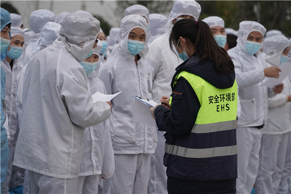 本次演練模擬A1車間西區樓頂空調外機著火情景。演練現場,安全環境部相關負責人擔任本次演練總指揮,秩序部發現火情并立即通知消控室,消防室隨即啟動火災專項應急預案并撥打消防隊電話請求支援。車間人員聽到火災警報后迅速疏散至升旗廣場緊急避難。消防搶險救災組、醫療救護組、后勤安保組迅速到位,立即展開救援,控制火勢并匯報現場情況。專業消防隊抵達金堂基地,立即使用舉高噴射消防車向樓頂出水滅火。演練現場,各應急小組各司其職,現場很快得到控制并消除,達到演練預期效果。