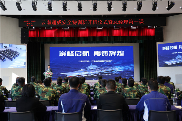 11月9日,云南通威順利舉行安全特訓(xùn)班開班儀式暨總經(jīng)理第一課。永祥股份副總經(jīng)理兼云南通威總經(jīng)理杜炳勝,云南通威總經(jīng)理助理閆一夫、人行部部長周旭出席儀式,安全特訓(xùn)班全體新員工參加。