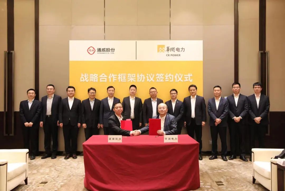 近日,通威股份與華潤電力戰(zhàn)略合作框架協(xié)議簽約儀式在深圳舉行。華潤電力黨委書記、總裁史寶峰,通威集團黨委書記,通威股份董事長、CEO謝毅就深化雙方合作進行交流,雙方主要負責人參與簽約儀式并共同見證。