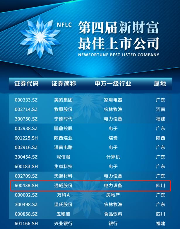通威榮膺第四屆新財(cái)富“最佳上市公司”殊榮
