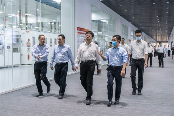 在通威太陽能智能制造體驗中心,調研團領導一行首先聽取了甘眉園區對項目招引、項目建設現狀的詳細介紹。隨后,調研團一行深入智能制造車間,近距離觀摩了通威太陽能高度自動化的生產線、智能化的制造設備,詳細了解了通威太陽能在智能制造、數字化管理等方面取得的成果。