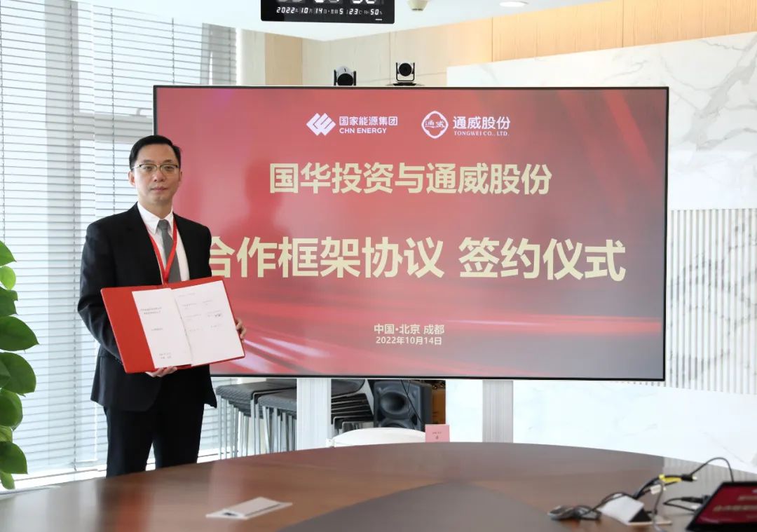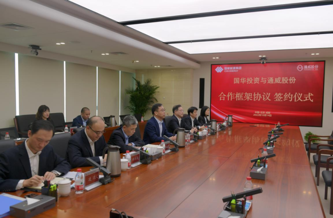 10月14日,國華投資與通威股份合作框架協(xié)議簽約儀式順利舉行。國華能源投資有限公司黨委書記、董事長(zhǎng)劉小奇,黨委委員、副總經(jīng)理劉瑞生,國華投資黨委委員、副總經(jīng)理李大鈞 ,通威股份董事長(zhǎng)、CEO謝毅,通威股份總裁助理劉舒琪,光伏商務(wù)部組件全球營(yíng)銷總經(jīng)理邱新等出席并通過視頻會(huì)議共同見證。