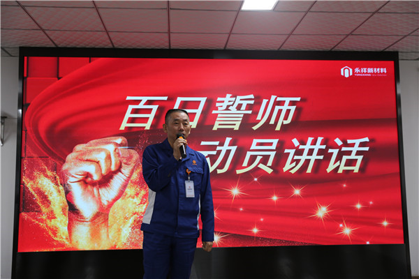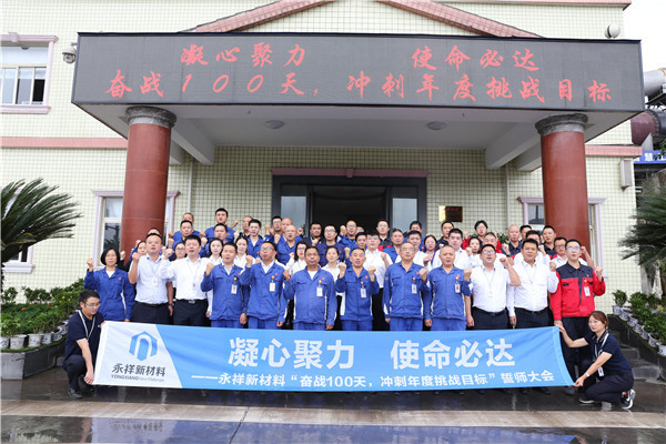 凝心聚力、使命必達(dá),為激發(fā)全體永祥新材料人的拼搏精神,增強(qiáng)沖刺年度挑戰(zhàn)目標(biāo)的決心,9月24日,永祥新材料成功召開2022年“奮戰(zhàn)100天,沖刺年度挑戰(zhàn)目標(biāo)”誓師大會(huì),公司常務(wù)副總經(jīng)理廖萬能、副總工程師吳銘生、總經(jīng)理助理李文彬、各部門助理工程師及以上人員、后勤職能部門全員參會(huì)。會(huì)議由人事行政部副經(jīng)理先鴻敏主持。