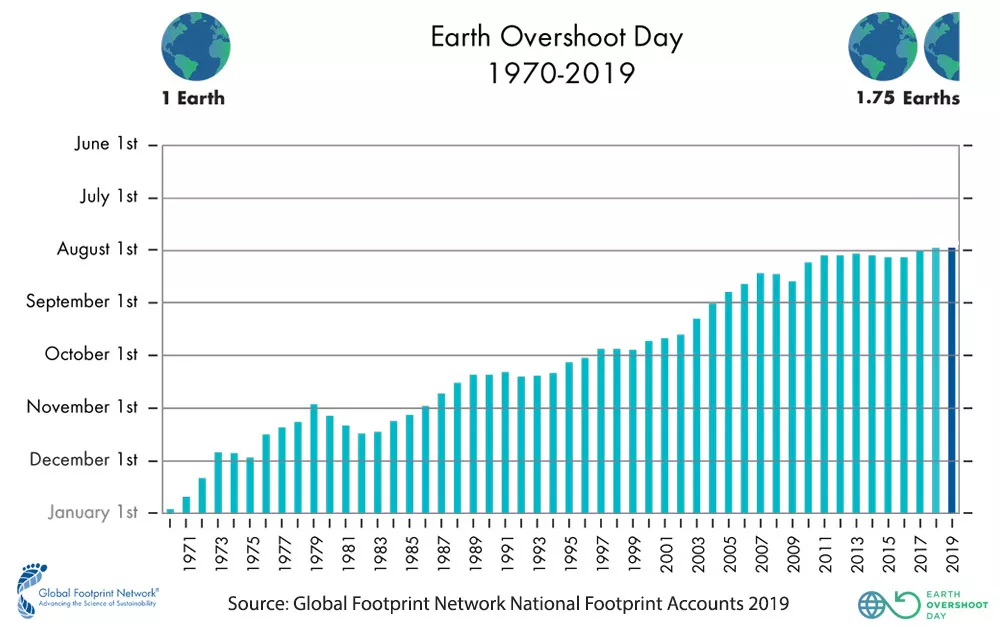 環保機構“全球足跡網絡”發布報告說,今年的“地球超載日”是7月29號,也就是說,在這一天人類已經耗盡了2019年一整年的自然資源“預算”,創下了新的紀錄。