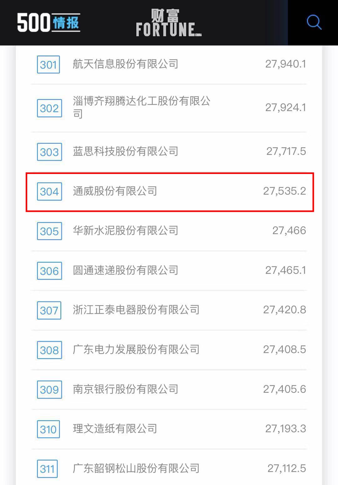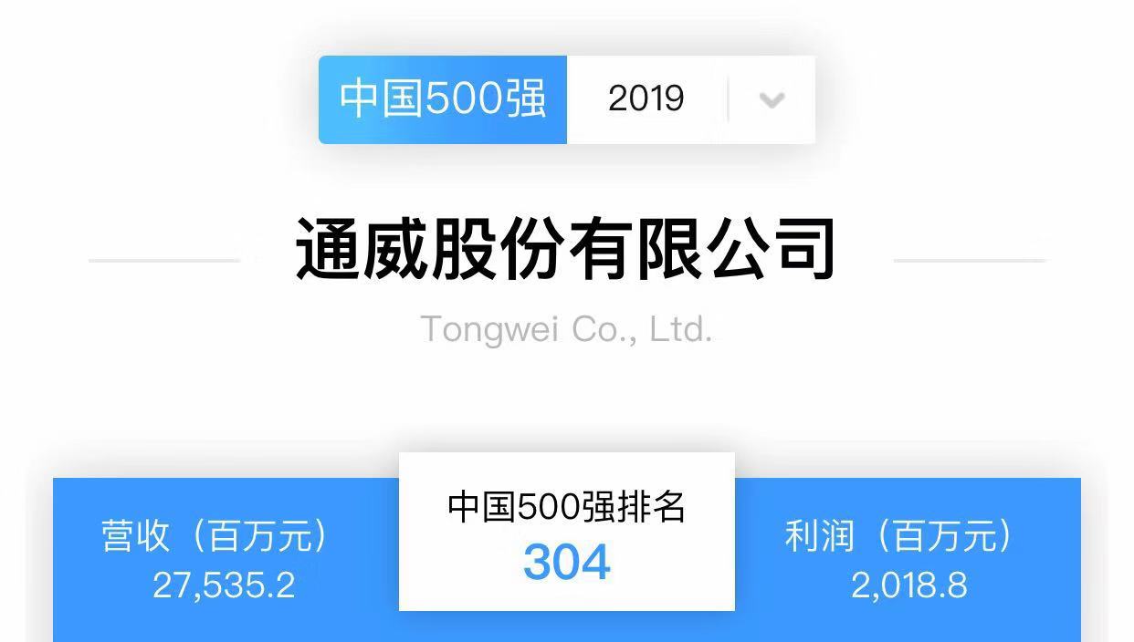 2019《財富》中國500強排行榜出爐,通威連續三年榮耀上榜!