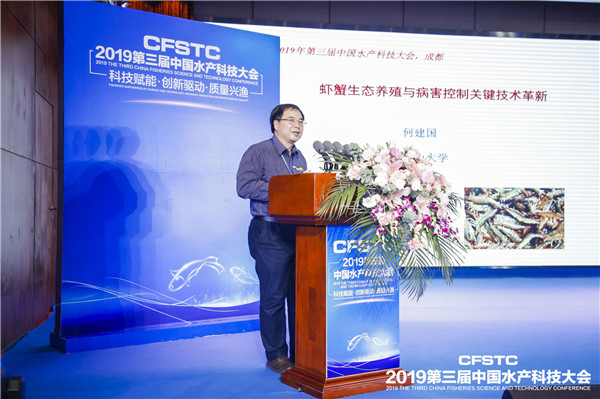 下午13:40分 中山大學教授、國家蝦蟹產業(yè)技術體系首席科學家何建國帶來“蝦、蟹生態(tài)養(yǎng)殖與病害控制關鍵技術革新”的主題演講。何教授表示,當前,我國蝦蟹養(yǎng)殖中,生態(tài)養(yǎng)殖的比例越來越高,多種生態(tài)養(yǎng)殖模式得到運用,這與生態(tài)養(yǎng)殖穩(wěn)定、環(huán)保、病害發(fā)生少等優(yōu)點息息相關。