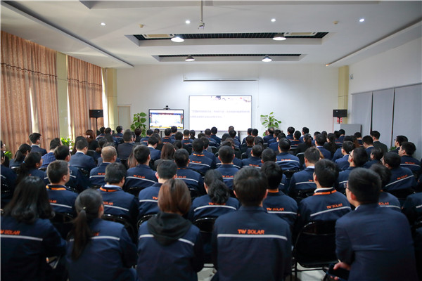 2018年,通威大學光伏學院的“高管大講堂”成功引領太陽能公司全體員工更加全面理解了公司戰略、樹立了個人目標。2019年,光伏學院乘勝追擊,將“高管大講堂”升級為“管理沙龍”,涵蓋技術沙龍、企業文化沙龍等多個子項目,覆蓋生產經營的各個方面。自3月21日首期技術沙龍成功舉行后,4月3日,首期企業文化沙龍盛大召開,通威太陽能董事長謝毅攜成都基地中高管團隊出席,合肥、成都兩地近600余人參會學習。
