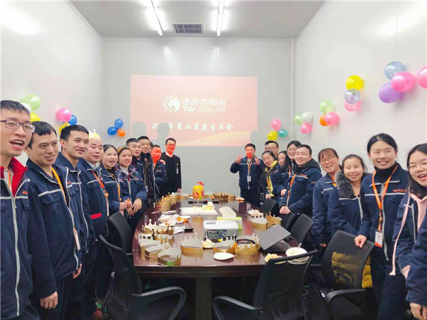 2019年“高管走進(jìn)車(chē)間送祝福”的慶生活動(dòng)是通威大學(xué)光伏學(xué)院生日會(huì)活動(dòng)的一次升級(jí)改版,旨在體現(xiàn)公司關(guān)愛(ài)員工的企業(yè)文化精神,打造融洽和諧的團(tuán)隊(duì)氛圍。未來(lái)光伏學(xué)院將繼續(xù)舉辦類(lèi)似活動(dòng),讓月度生日會(huì)的關(guān)懷舉措覆蓋到每一個(gè)部門(mén),讓更多的員工參與其中,感受公司領(lǐng)導(dǎo)的關(guān)懷,感受通威太陽(yáng)能這個(gè)大家庭所給予的溫暖與祝福。