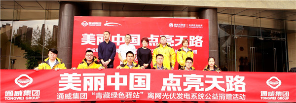 2018年5月,通威集團積極響應習近平總書記在十九大報告中“加快生態文明體制改革,建設美麗中國”的號召,充分發揚企業社會責任,發起“美麗中國,點亮天路”主題活動,為“青藏綠色驛站”點亮明燈,公益捐贈三套離網光伏發電系統,照耀4500米海拔“無人區”,為青藏高原上的“綠色驛站”提供無污染、可持續的綠色清潔能源。