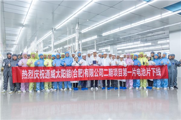 2018年11月28日,通威太陽能合肥二期項目第一片“智能制造”高效晶硅電池片順利下線