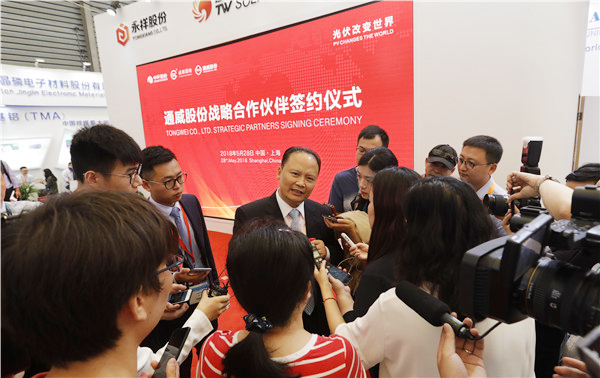 2018SNEC上海光伏展上,媒體聚焦通威并專訪劉漢元主席