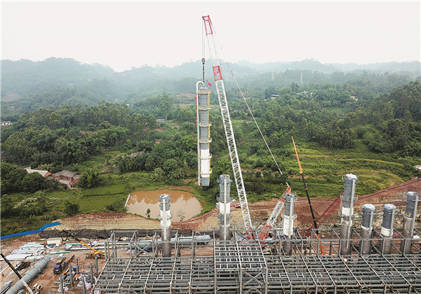 永祥股份高純晶硅項目精餾塔吊裝現(xiàn)場
