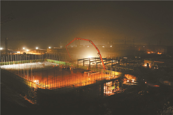 夜里,永祥新能源項目建設(shè)工地?zé)艋鹜?/span>