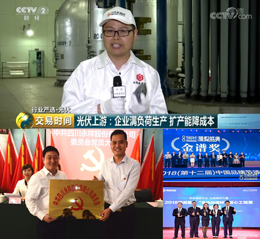 上半年,我國環境保護領域歷史最悠久、發行量最大、最具權威性和影響力的綜合性期刊,《環境保護》雜志兩度聚焦永祥股份,專題報道永祥綠色高質量發展之路;5月 5日,四川衛視《四川新聞》欄目推出“奮斗新時代”專題報道;7月19日,《中國環境報》記者深入永祥股份采訪公司積極踐行綠色發展、高質量發展等相關工作情況;8月27日,由新華社、人民網、《四川日報》、新浪四川、四川新聞網,《樂山日報》等國家、四川省內主流媒體組成的記者團一行20人走進永祥見證綠色高質量發展;10月30日,新華社、中國改革報、21世紀經濟報道、中國能源報、索比光伏網、北極星光伏網、國際能源網、黑鷹光伏、世紀新能源網、硅業在線、中國證券報、上海證券報、證券時報、證券日報、內蒙古衛視、內蒙古日報、內蒙晨報、包頭日報、包頭晚報、包頭電視臺等20多家主流權威媒體深度聚焦內蒙古通威;11月,央視財經頻道交易時間欄目報道永祥高純晶硅;12月28日,人民網、中國質量報、四川經濟日報等20多家媒體聚焦樂山永祥新能源高純晶硅項目投產。2018年,永祥在電視熒屏亮相達40多次。