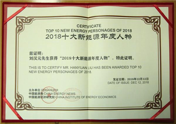 劉主席(右四)榮膺“中國十大新能源年度人物”殊榮