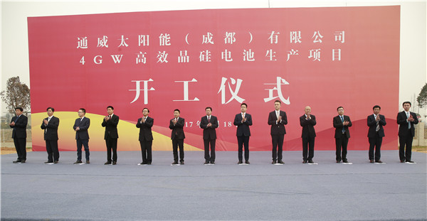 2017年2月18日,通威太陽能(成都)有限公司4GW高效晶硅電池生產(chǎn)項目開工儀式隆重舉行。雙流一期1GW高效晶硅電池項目僅用7個月完工,3個月達(dá)標(biāo)達(dá)產(chǎn),成為全球建設(shè)速度最快、自動化程度最高、單車間產(chǎn)能規(guī)模最大的高效晶硅電池項目。