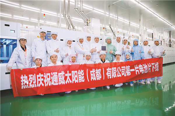 2016年6月30日下午7點07分,通威太陽能(成都)有限公司103廠房燈火通明,歷時7個月的工程建設(shè),近兩個月緊鑼密鼓的設(shè)備安裝調(diào)試,在一片歡呼聲中,通威第一片“成都產(chǎn)”電池片順利下線!
