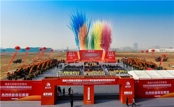 2017年11月8日,通威太陽能合肥基地10GW高效晶硅電池項目啟動儀式隆重舉行。該項目的開工建設(shè)將進一步突顯通威太陽能在高效晶硅電池領(lǐng)域的規(guī)模優(yōu)勢、成本優(yōu)勢及質(zhì)量優(yōu)勢,強化提升市場競爭力,助力公司打造世界級光伏企業(yè)和世界級清潔能源公司。