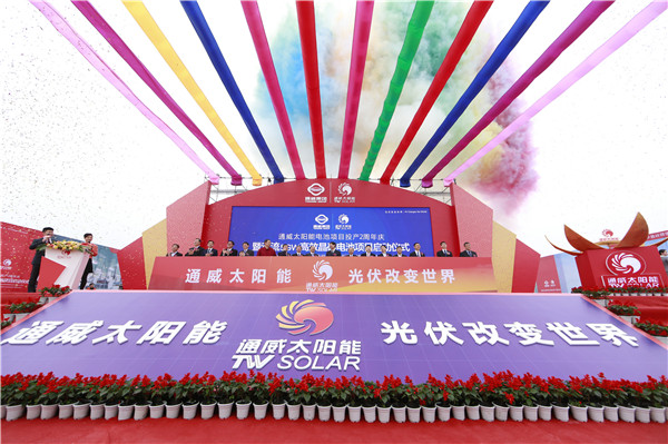 2015年11月18日,通威太陽能電池項目投產(chǎn)2周年慶暨雙流5GW高效晶硅電池項目啟動儀式隆重舉行,通威太陽能正式開啟合肥、成都兩地“雙城時代”。